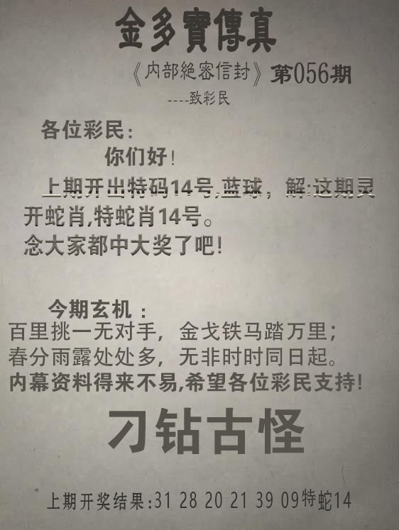 055期必中①肖【蛇】开 14 准